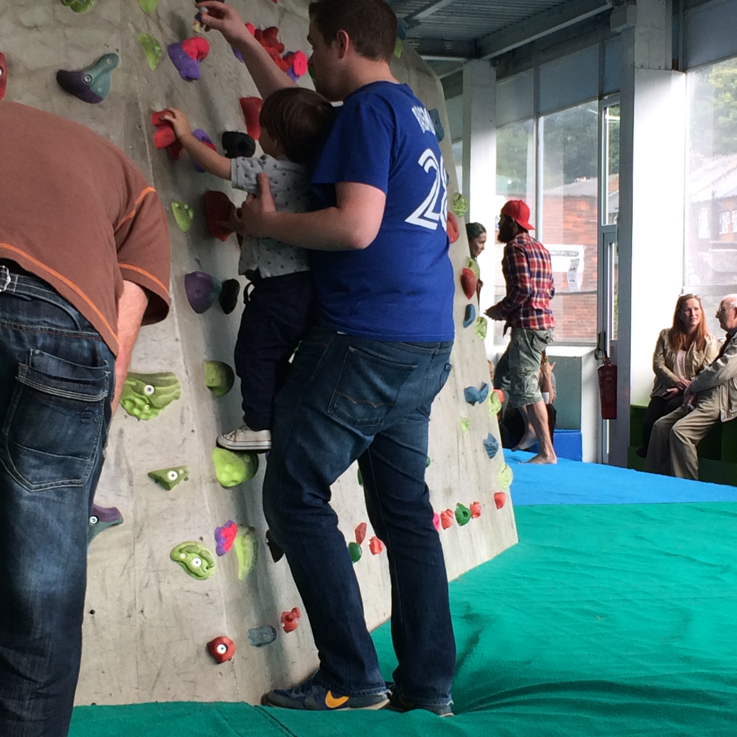 Then off to the Mini Climbing Works. If you live in Sheffield and have kids, then this is a must at some point! Can’t say Logan did all that much climbing…lots of spinning round and jumping on the mats, but he had fun nonetheless. We did manage to persuade a bit of climbing by putting his ‘Grandpa’ duplo figure on one of the holds and encouraged him to climb and get it. He loved it!