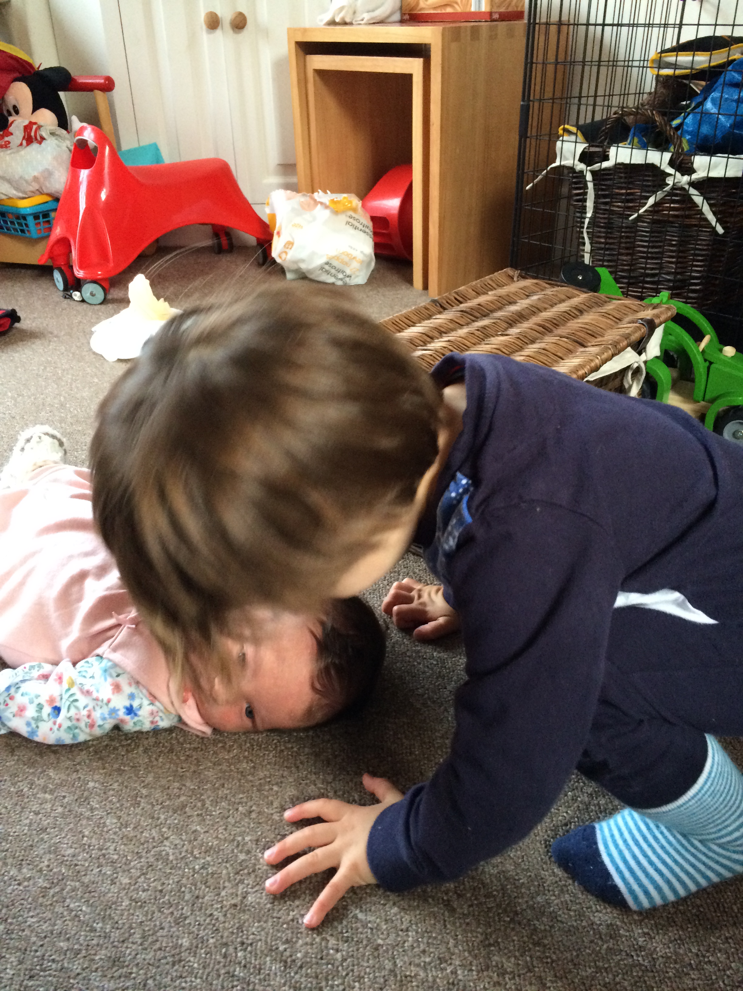 up to her cot or want to get in. He’s so happy when she wakes and I bring her in to play. He’s started trying to pick her up or take her hand so she can come and play with him. I can’t wait till they can play together. However, I’m well aware we have to get through the stage where she’s crawling round and destroys everything he’s doing!!
